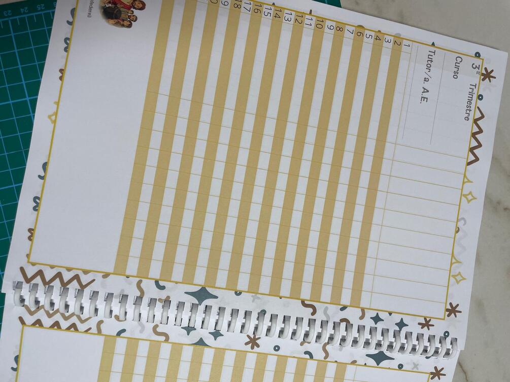 - Evaluación (1 hoja CON 24 registros por trimestre y nivel PARA 9 GRUPOS, si quieres para más grupos no olvides imprimir los 3 trimestres por grupo) 💡(Como no tengo grupos de más de 12 alumnos, en cada trimestre divido la hoja en horizontal dibujando una raya con un color y escribo en la parte de arriba los del grupo A y debajo de la línea horizonzal los alumnos del grupo B.)